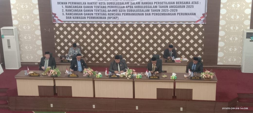 KETERLAMBATAN APBK 2026 SUBULUSSALAM DIDUGA AKIBAT PERBEDAAN SOAL ANGGARAN, DPRK DIDUGA TERLIBAT DALAM PEMBENTUKAN POTENSI DEFISIT Muliono Kades Sei Rejo Diduga Berbohong Ketika Ditanya Mengenai Perkembangan Masalah Penutupan Saluran Aliran Irigasi. Komplik Pembahasan APBK Kota Subulussalam TA.2026.Cermin Kemunduran Daerah,BPKP Segera Turun NARASI MASYARAKAT SUBULUSSALAM: TANGGUNG JAWAB BERSAMA ATASI DEFISIT, HAPUS POKIR ATAU HADAPI RISIKO BERGABUNG KEMBALI KE ACEH SINGKIL PEMBAHASAN TERKAIT INTERPELASI YANG DIAJUKAN FRAKSI GOLKAR DAN HANURA TERHADAP WALIKOTA SUBULUSALAM Mendagri : Pemerintah Kembalikan TKD Rp 10,6 Triliun Untuk Aceh, Sumut dan Sumbar.